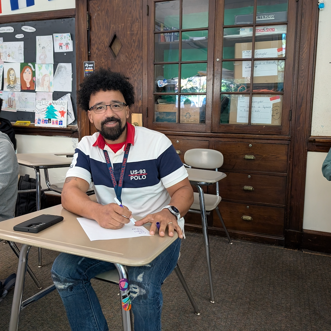 Dear Friends of the BHS Innovation Fund, Now in its second year, the Heritage Spanish-Speaker Pathway continues to offer Brookline students who have a cultural connection to the Spanish language the opportunity to strengthen their language skills and explore the depth of their cultural heritage. This year, the program has expanded to include a second-level course this year which is taught by Kevin Whitehead and Pedro Méndez. Building on the foundation of pride, literacy, and identity developed in the first year, Year Two deepens students’ skills in writing, reading, and cultural understanding while continuing to create a strong sense of community among heritage speakers.In the first unit of the year, students engaged in a poetry project inspired by Cool Salsa, a collection of poems by Hispanic authors. Through close reading and discussion, they analyzed how poets use figurative language and imagery to express identity and emotion. Then, in both individual and group poems, students created their own works centered on aspects of who they are. The project also emphasized accuracy in writing, including the use of accents and attention to detail in spelling and meaning. “The poetry project was interesting,” said sophomore Kayla Santos. “We got to play around with metaphors and similes. It was a great way to foster community because we know each other better, and it makes class go easier at times.”Students reflected on what it’s like to continue in the same cohort for a second year and how this class differs from their previous Spanish experiences. “It feels like we’re all moving on this journey together and improving at the same pace,” said Natalia Griffin. “It’s made for people who speak Spanish at home but need a different type of practice.” Classmate Santi Derrien explained that this program feels more connected to their real experiences. “We’re learning things that are really tailored to us,” he said. “It helps me understand more about the language I already speak.”